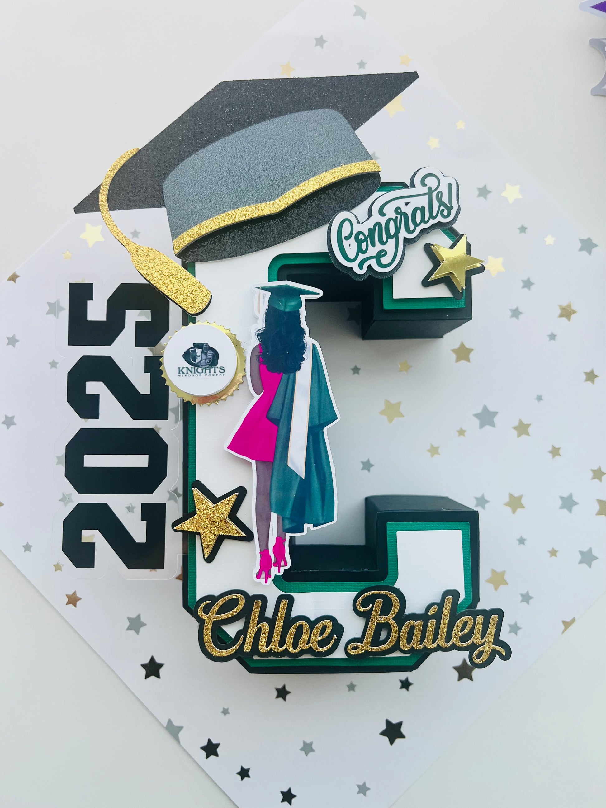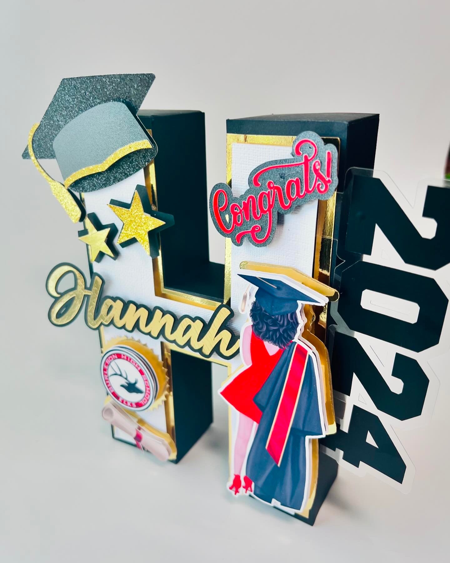 This 3D letter comes in any colors, your choice of person image, school color themed. Perfect Gift for that 2025 Grad!! 👩🎓 👨🎓